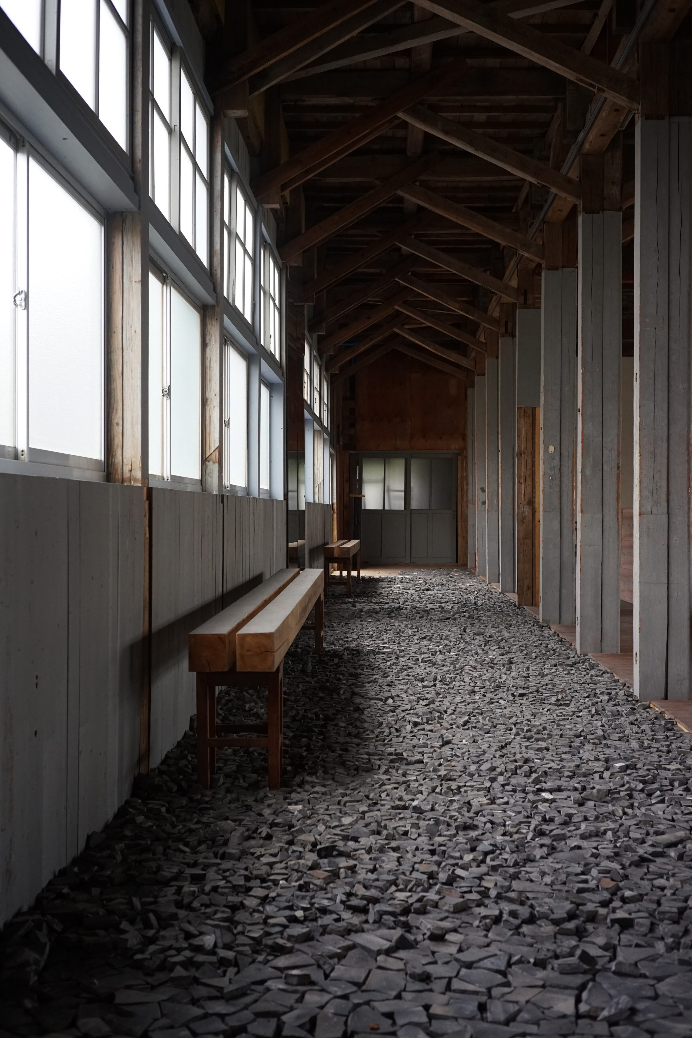 千葉県いすみ市にある廃校となった中学校の建物を、地域の天然素材や廃材の”色”やテクスチャを活かして多目的スペースに改修しました。