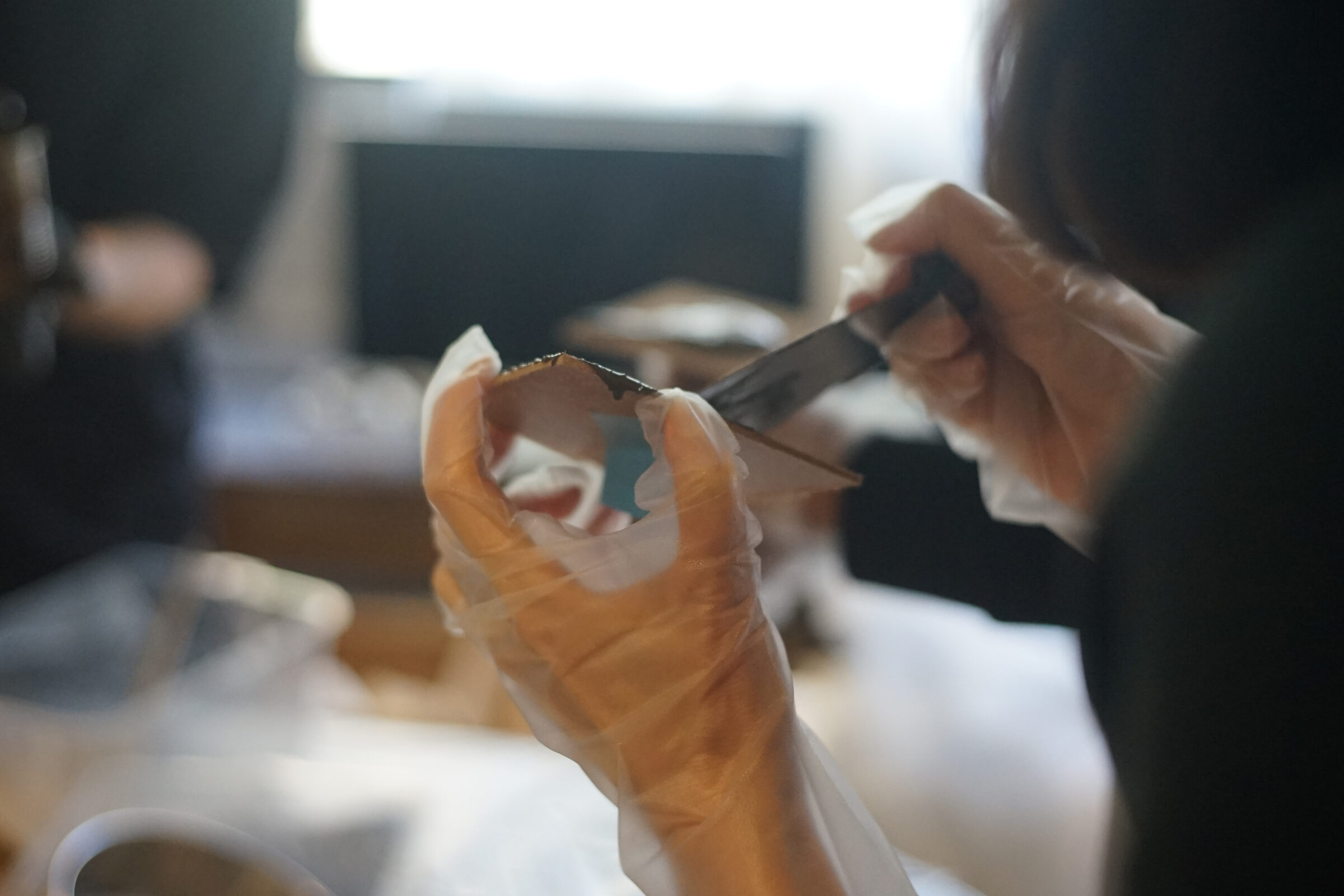 地域ならではの素材が生み出す物語/意匠の可能性を共有するために、まず、運営・設計チームと共に素材に触れるワークショップを実施。その体験を踏まえて対話を重ね、何を作るか、何を塗るかを決めていきました。